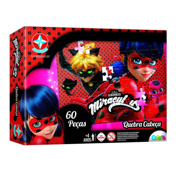 2. Quebra Cabeça Miraculous Ladybug 60 Peças Estrela